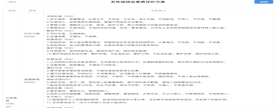 一级指标,落实五育并举的根本要求,按照德、智、体、美、劳五大领域进行构建,在内涵和指标设置上与五育相契合;二级指标对一级指标进行了细化,凸显基于学情的校本特色。三级指标,是对二级指标在实施层面的进一步细化,学校集结骨干教师,重构评价维度,优化评价指标,并对各指标的评价进行赋分管理,让各学科的评价真正指向学生核心素养的全面发展。