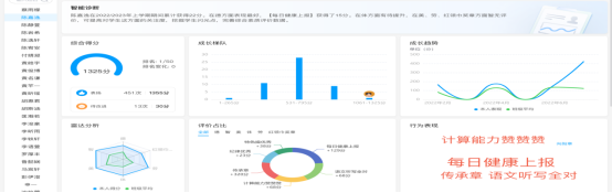 平台汇聚学校、家庭、社会三方数据,绘制五育网状雷达图。学业、品德、艺术、健康、实践五维同屏呈现,优势区耀眼、短板区显色,系统自动推送“成长处方”。教师据此调整教学,家长据此精准陪伴,学生据此扬长补短,人人有方向,个个能闪光。
