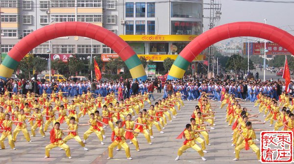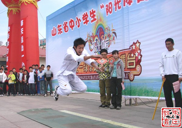 10月24-26日, 山东省中小学生《阳光体育大擂台》枣庄市市中区、薛城区、滕州市隆重举行了阳光体育活动启动仪式,市中区十六中代表队进行了精彩表演;薛城区六所中小学校的1200余名学生,分别进行了武术操《中国功夫》、课间舞《快乐篮球》、《呼啦圈》、《竹竿舞》、《太极拳》、《跆拳道》等六场精彩的集体表演;滕州市更是精心组织,近2000名同学进行了精采表演。此外,滕州市、薛城区、市中区还分别选出中小学的40名运动员进行了跳绳、踢毽子、仰卧起坐、立定跳远等四个项目的个人竞技类比赛。