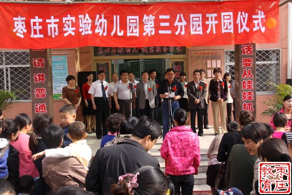 赵联冠在讲话中说,市实验幼儿园按照市政府部署,依托枣矿科技幼儿园移交地方的资源,全面施工改造,在短时间内建成了市实验幼儿园第三分园并于今天开园,在全市范围内率先实现了优质幼儿园集团化办园,树立了典范。这也是我市通过挖潜扩容、兼并共建等方式,为进一步整合优质教育资源,解决老城区幼儿入优质园难题,推行以名园强园为龙头集团化办园结下的硕果。至此,我市依托两次荣获“省十佳园”荣誉称号的枣庄市实验幼儿园,在老城东、城北和新城驻地组建的“枣庄市实验幼儿园幼教集团”三个园区全部到位。他希望市实验幼儿园再接再厉,继续发扬优良作风,不断地创造、积累经验,发挥示范、带动作用,使我市更多的幼儿享受到优质的学前教育,让广大人民群众更满意,促进全市学前教育的发展。
