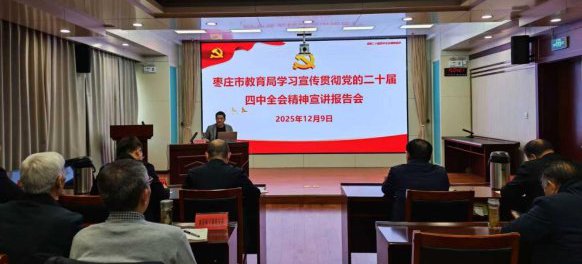 12月9日,市教育局举行学习贯彻党的二十届四中全会精神宣讲报告会。市直机关宣讲团成员,市教科院教研员、中小学高级教师,山东省思政教学指导委员会成员孟庆亮作宣讲报告。市教育局机关党委所属党总支、支部党员干部参加宣讲报告会。