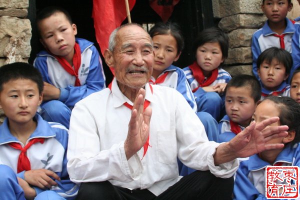 在八路军第115师师首长故居前,86岁高龄的老党员、老八路尚炳新爷爷现场讲述罗荣桓、陈光等老一辈革命家不怕牺牲、艰苦奋斗的故事,给孩子们上了一堂生动的爱国主义教育课。在八路军115师司令部机关旧址前,60名新少先队员在这里举行了隆重的入队仪式,老八路尚炳新爷爷亲手为新入队的刘莹小朋友胸前系上了鲜艳的红领巾。“我是中国少年先锋队队员。我在队旗下宣誓——”,在115师司令部机关旧址前,全体少先队员一起重温了入队誓词。