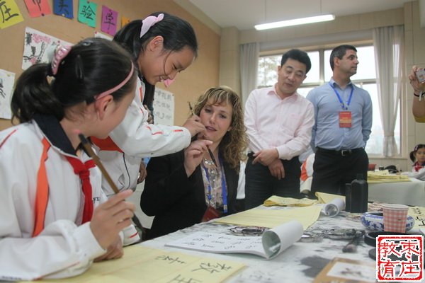 孙飞校长首先代表全校师生对澳大利亚南澳州研访团一行的到来表示了热烈欢迎。孙校长向各位研访团成员介绍了枣庄市实验学校的基本办学情况和建校以来的学校发展,着重介绍了学校的办学理念、课程设置和学校特色,表达了与澳大利亚教育同仁共同发展,实现双赢的良好愿景。随后,双方在亲切友好的气氛中就彼此感兴趣的教育话题进行了热烈的讨论,交换了看法。在孙校长的陪同下,研访团成员先后参观了学校校园,走进了学校民乐、合唱、国画、书法、经典古诗文等带有鲜明民族特色的课堂,分别与中、小学生用英语围绕澳大利亚为话题进行了互动交流。研访团一行对学校富有文化气息的校园环境、先进的教育理念、民族化的特色课程表现了浓厚的兴趣。
