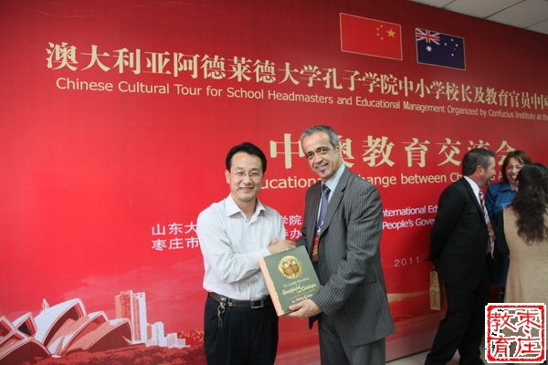 澳大利亚南澳州教育主管Scherwitzel Mel先生向孙飞校长赠送礼物