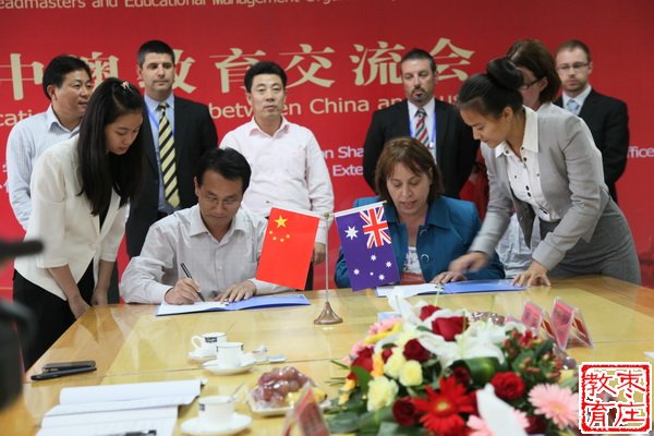 本次参观访问是在上半年澳大利亚南澳洲校长考察团参访的基础上推动的第二次交流考察活动。签约仪式上,孙飞校长代表学校分别与泰尼森伍兹学院和圣•方济学校的两位校长签订了合作协议,宾主双方互赠了礼物,共同表达了促进两校的合作与发展的愿望。