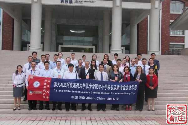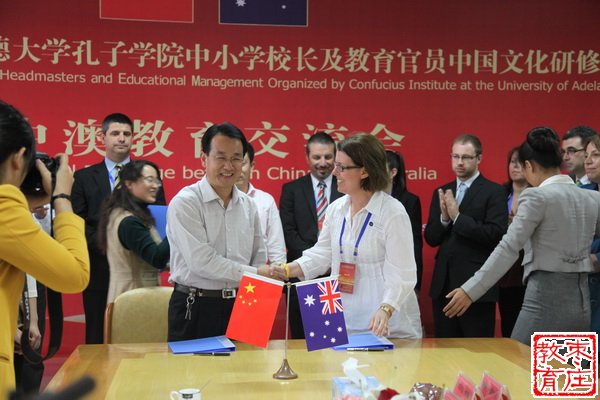 近日,澳大利亚阿德莱德大学孔子学院中小学校长及教育官员中国文化研修访问团一行12人在市外侨办黄公勇副主任的陪同下到枣庄市实验学校参访,其中泰尼森伍兹学院和圣•方济学校分别与枣庄市实验学校正式缔结为国际友好学校。枣庄市教育局副局长冯仰军陪同参观访问,枣庄市教育局党委委员、枣庄三中党委书记、校长于卫东参加了签约仪式。